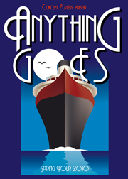 This has to be one of the warmest and funniest shows in musical theatre and has been wowing audiences since its inception in the 1930s. Our production set sail for Abergavenny in March 2010 for a few days and then arrived in Penarth. This was not to be any old production: we had our usual constraints, we had to afford it and we had to get it all in one van! Directed by Paul Buckle (who also directed our extremely successful Fiddler On The Roof and before that Orpheus) he was determined that we would not have any clunky sets and wanted lots of pace!