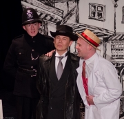 This show is such an ensemble piece and it really should be done more by the amateur circuit as everyone had great lines, songs and characters to play. The baddies were led by Richard Thomas as Dr Swaby, ably assisted by Steve Hopkins as Lockwood the solicitor and Gareth Tilley as the loveable but hapless accountant Allerdyce. Allerdyce's love for a pig, whom he names after Princess Elizabeth, knows no bounds as the finale revelations make clear. This trio is joined by meat inspector Wormold which was given life by Kristian Zgorselski in an over-the-top melodramatic, and somewhat camp fashion, that was just right for the part. Yet another show stopping number was his Painting by Heart song.
