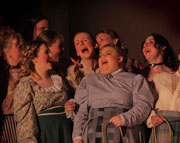 The director played the rather warty Nick Cricker/ Durdles, the grave digger, and was ably assisted by Jo Fowler as his daughter/sidekick. The whole evening was under the direction on stage of Paul Buckle as Mr Cartwright, the Chairman of The Music Hall Royale. A huge role for anyone, but Paul tackled it with his usual cheeky charm. Throw into this melange a cast of Victorian actors as townspeople it was all in all a fabulous fun production onstage and off.