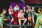 Saucy Jack, the charismatic but shady owner of the cabaret bar, was played with vigour by Richard Thomas who won a District NODA award for Outstanding Performance. The Space Vixens, the fierce, fearless, and fabulous trio of intergalactic crime-fighters who believe in truth, justice, and disco, were fabulously played by Catherine Jones, Carly Griffin and Zoe Phillpott. Carly was also nominated for her performace for a NODA Award for her portrayal of Jubilee Climax/Vulva Savannah. Booby Shevalle, a sultry, soulful singer at the cabaret, longing for love and a way out of this shady world, was played by Mikey Porter. Ben Mussell as Dr. Willy von Whackoff, the flamboyant and eccentric scientist with a penchant for bizarre inventions and dubious medical advice was a hoot and bared all alongside Josh Neal as Mitch Maypole, the sweet, love struck songwriter working at the club. Sammy Sax was played as a Vixen love interest by James Perons. Chesty Prospects, a larger-than-life, confident diva played to Rhiannon Rose-Goodsir's strengths as she gave it her all. Backed up by a small ensemble, Saucy Jack and the Space Vixens proved to be an eye-opening, thrilling and hysterical experience for the good people of Penarth. Here's to Glitter Boots!