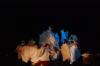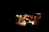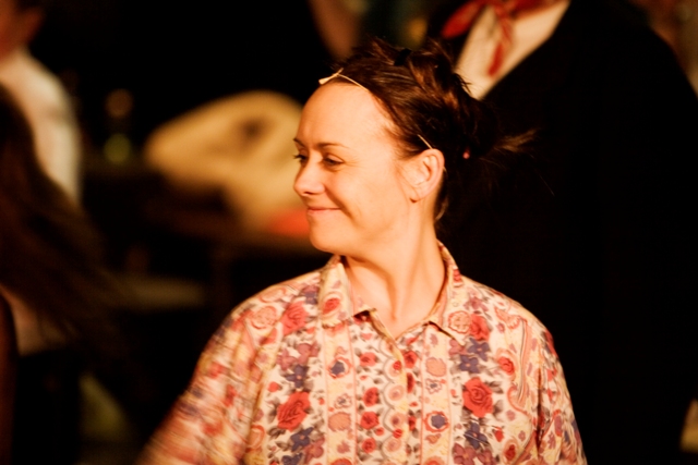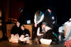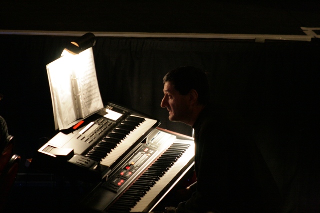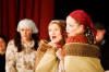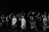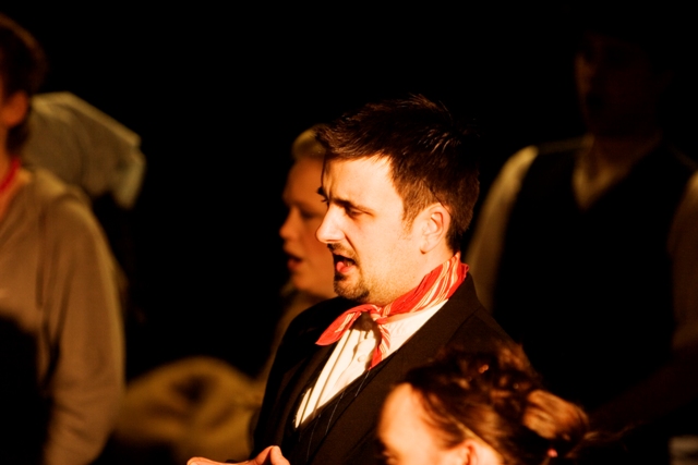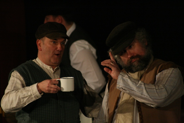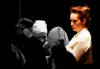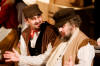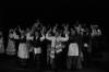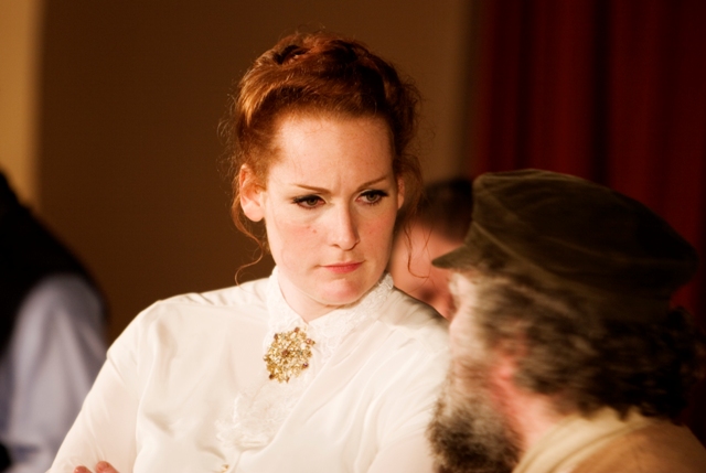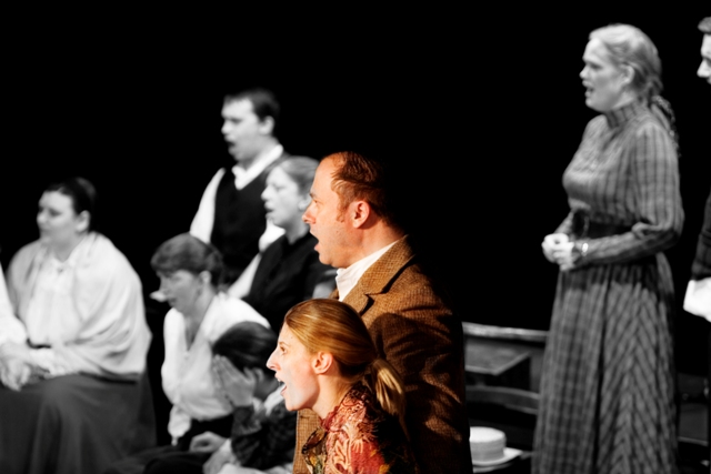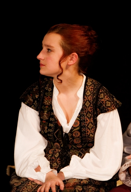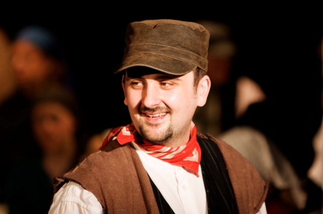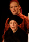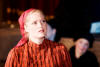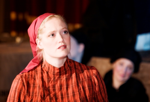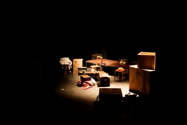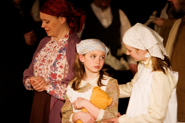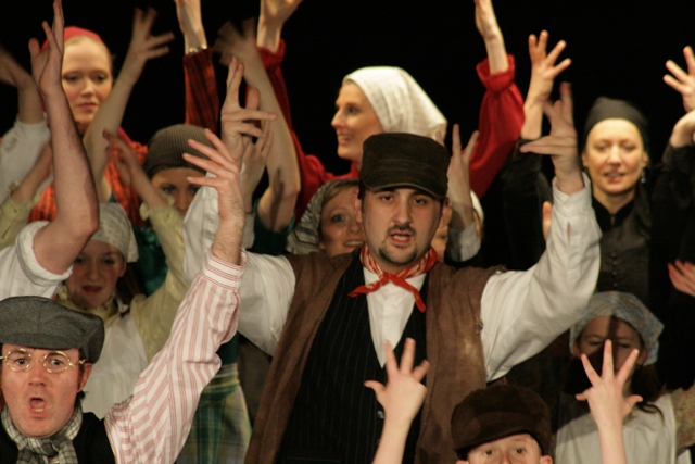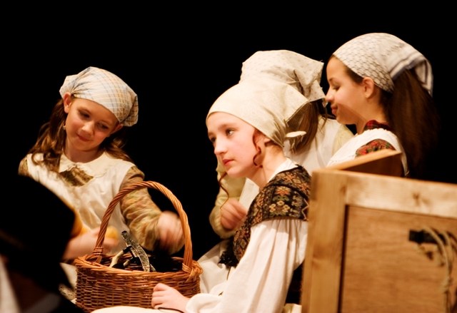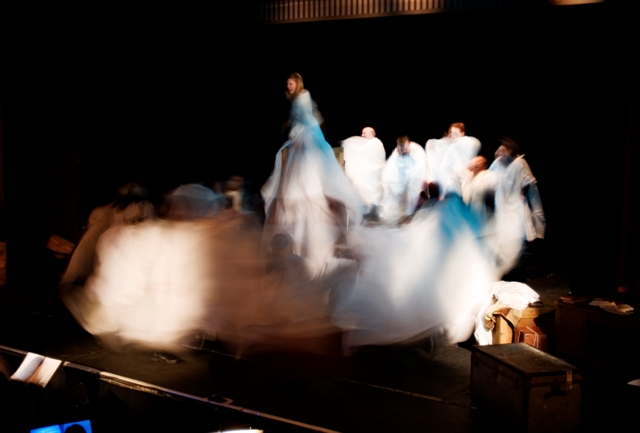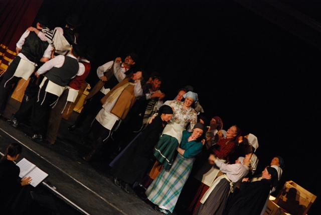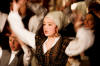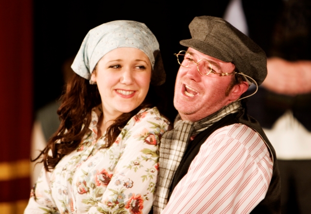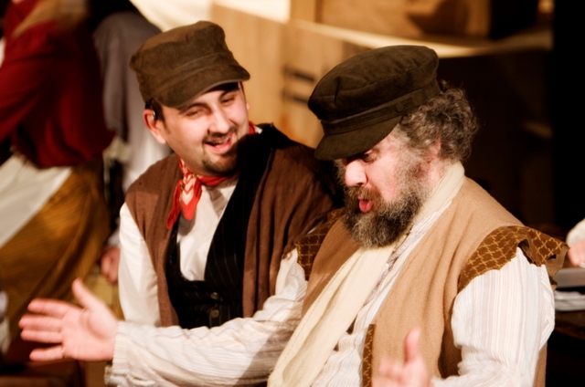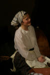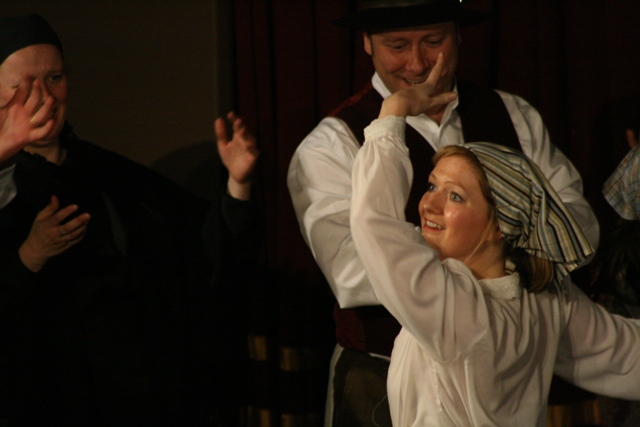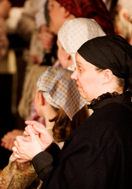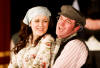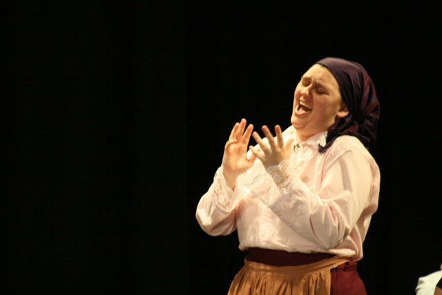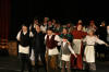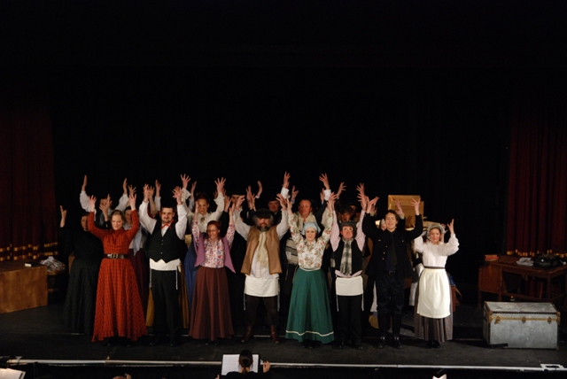Our set designer Liz did a fantastic job in realising Paul's concepts of the waiting area of Ellis Island - lots of tea chests and packing crates were constructed, including a special set which created a pyramid of boxes from which Fruma Sarah magically appeared at the top with a gigantic white wedding dress cascading down for the nightmare sequence.